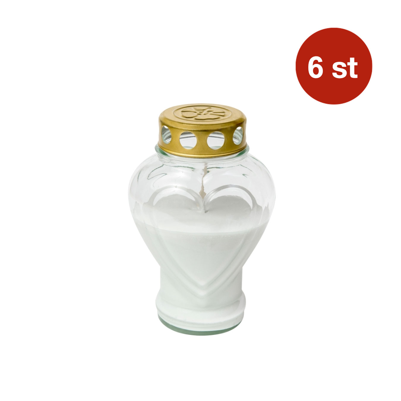 Bolsius gravljus i hjärtformat klart glas med metallock som skyddar lågan från att slockna vid blåst. Ljuset är tillverkat av en blandning av paraffin och vegetabiliska oljor, helt utan palmolja. Det brinner med en vacker låga även vid hög luftfuktighet, blåsigt väder eller frost, utan att ryka eller sotar. Reffilbehållaren i högkvalitativ plast gör att ljuset står stadigt i lyktan och förhindrar att vaxet rinner ut. Behållarens etikett kan enkelt tas bort. Endast för utomhusbruk.