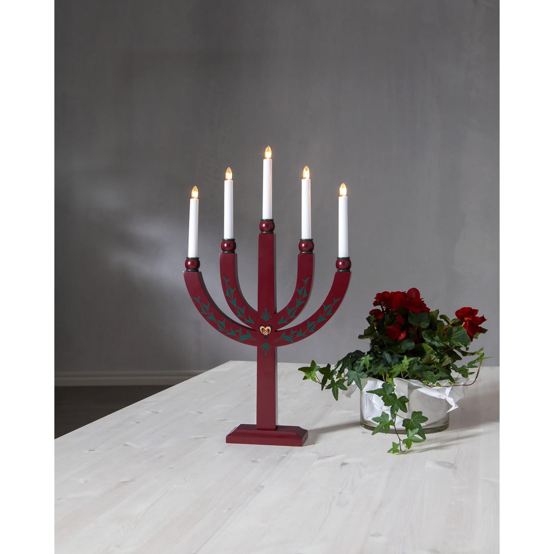 Traditionell träljusstake med fina detaljer Adventsljusstaken har 5 ljuskällor som ger ljusstaken en mysig belysning och en hemtrevlig julkänsla. Placera i fönstret eller på en skänk.