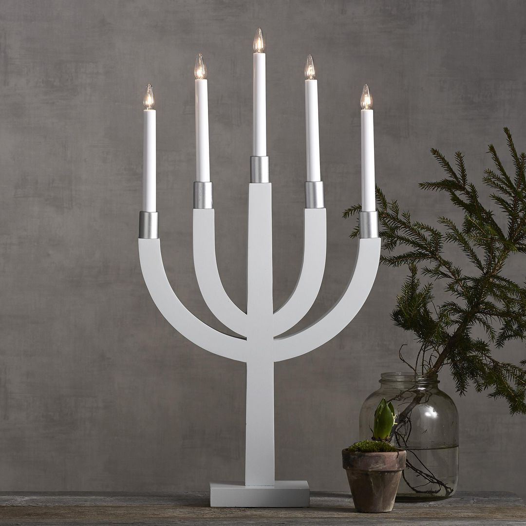 Star Trading Elljusstake 5 ljus Trä Vit 35x67cm