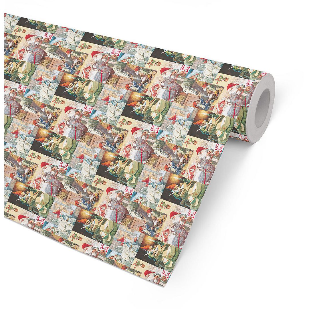 FSC-mäkt julpapper med de klassiska motiven av Jenny Nyströms traditionella jultomtar. Av svensktillverkat bestruket papper, 80g.