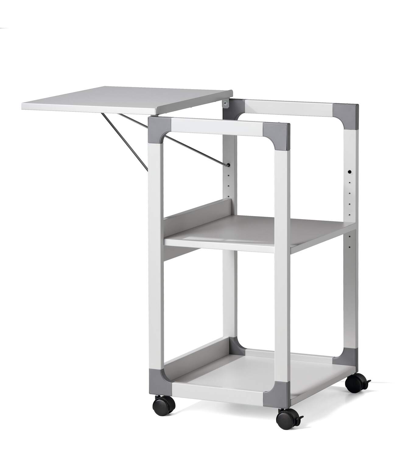 Projektorbord på hjul för en projektor / beamer eller overhead. Slitstarka hyllor av 19 mm träskivor där översta hyllan har justerbar lutningsvinkel föratt få rätt position på projektorn. Den går också att fälla ut i sidled för att ge plats för en overheadprojektor. Mittenhyllan är justerbar i 32 mm intervaller. Metallstomme med reptålig polyesterbeläggning och fiberglasförstärkta plasthörnor. 4 st svängbara länkhjul, varav 2 st har broms. Lätt att förflytta och stabil när den är "parkerad". Levereras i platt paket med monteringsanvisningar. Mått översta hyllan: 508 x 432 mm (BxD). Mått mittenhyllan: 468 x 413 mm (BxD). Mått bottenhyllan: 468 x 413 mm (BxD).Totala mått: 882 x 508 x 432 mm (HxBxD)