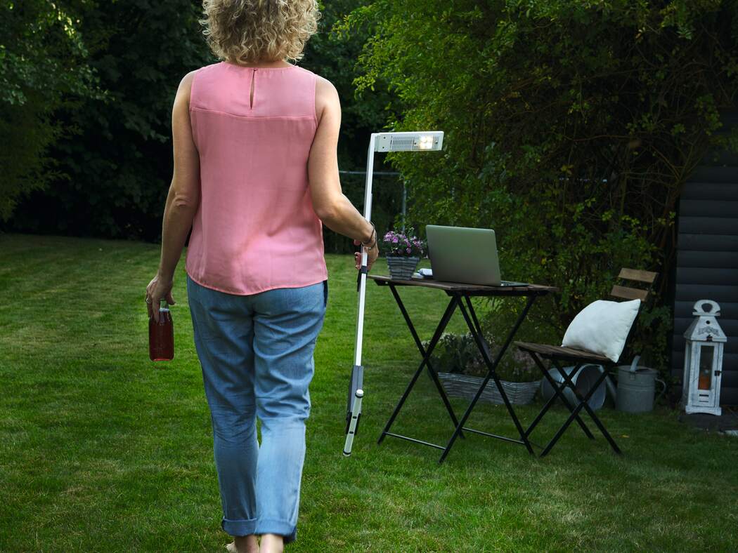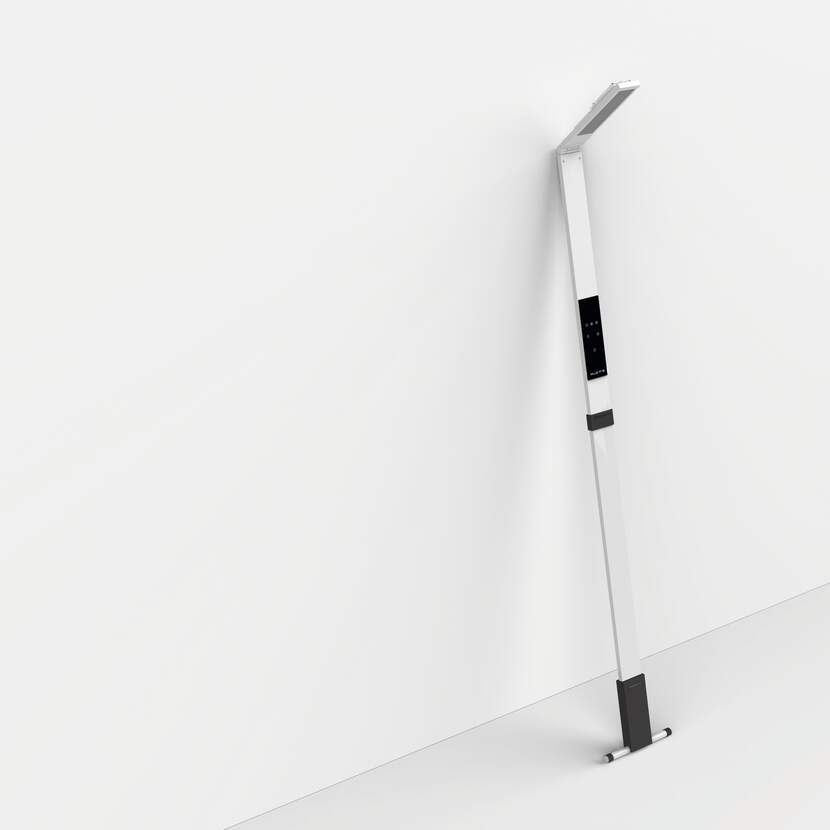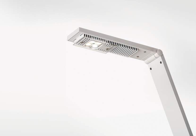 Trådlös LED-lampa med biologiskt effektivt ljus som är utvecklad för mobilt och flexibelt arbete både på kontoret och i hemmiljö. Lampan ger en jämn och kraftfull belysning av arbetsytan och bidrar till ökad koncentration och välbefinnande genom Human Centric Lighting. Den halksäkra foten i kombination med höjdreglerbart kantskydd gör att lampan står stabilt i alla lägen. Ljusstyrka och ljusfärg justeras intuitivt via pekpanel med avancerad VITACORE®-elektronik. Färgtemperaturen kan individuellt anpassas efter dygnsrytmen i tre nivåer. Tack vare det inbyggda litiumjonbatteriet erbjuder lampan upp till nio timmars driftstid. Det vridbara lamphuvudet möjliggör både direkt och indirekt ljus, samtidigt som effektiv temperaturhantering säkerställer en mycket lång livslängd på LED-modulerna.