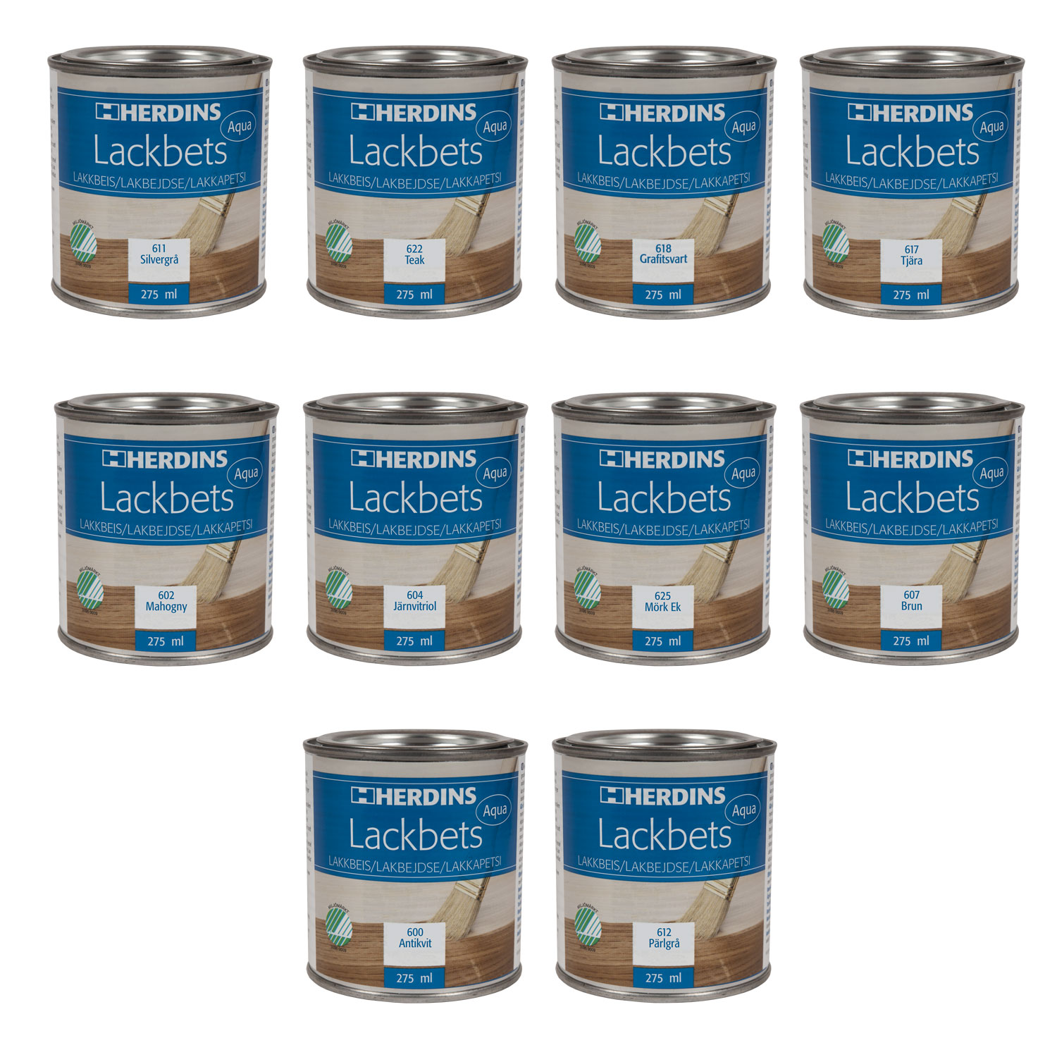 Herdins Lackbets Aqua är en Vattenburen och miljömärkt färdig betslösning med lack som färgsätter tidigare behandlade eller renslipade möbler. Finns i flera kulörer. En burk på 275 ml räcker till ca 2,5–3,0 m².