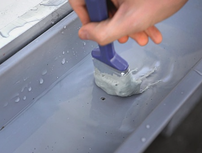 Ta bort damm, smuts, fett, mossa och vissna löv. Rengör reparationsytor med hård borste och svamp. Kan appliceras direkt på bitumen, hård PVC, polyester, zink, aluminium, glas och kakel. Porösa material som betong, sten och trä måste först torkas och grundas med Primer 44HS.