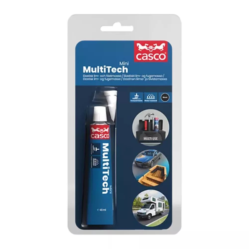 Casco® MultiTech Mini är speciellt avsedd för både utomhus- och inomhusbruk. Den används vid limning och fogning i båtar, bilar, husvagnar samt i hus och byggnadsapplikationer där en flexibel och stark fog krävs. Produkten lämpar sig väl för applikationer där fogarna utsätts för rörelse, vibrationer och varierande klimatförhållanden.