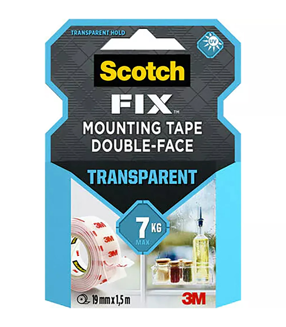 Transparent monteringstejp med 3Ms avancerade teknik. Denna osynliga tejp håller föremål som väger upp till 7 kg och kan användas inomhus och är perfekt för glas, kakel, akryl och metall.