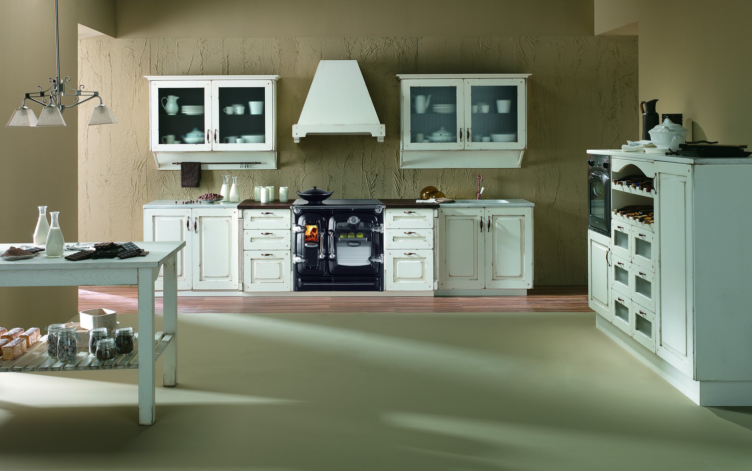 Vedeldad köksspis med yta i högkvalitativ emalj. Kan rengöras med bara en fuktig trasa.