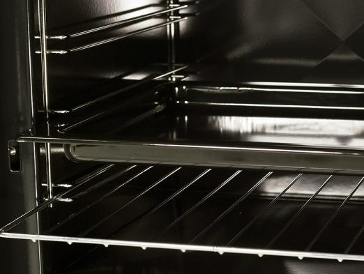 ● Ugn i rostfritt stål med rengöringslucka och kromade gångjärn och handtag