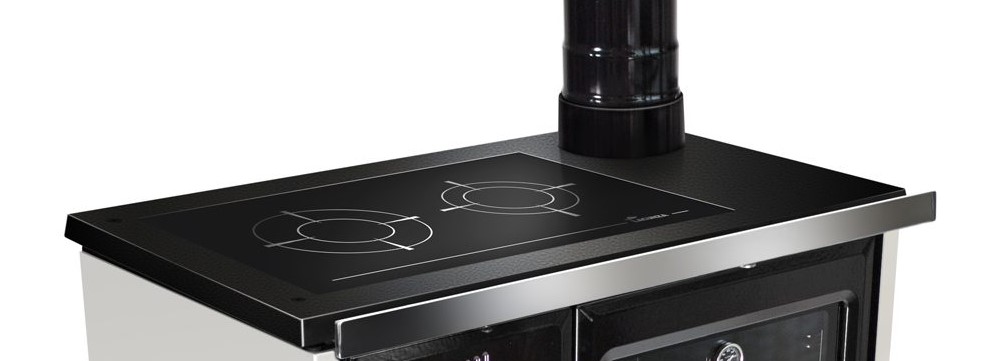 Vedeldad köksspis med yta i högkvalitativ emalj. Kan rengöras med bara en fuktig trasa.