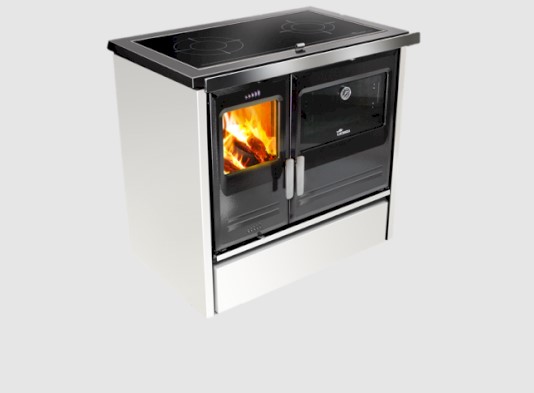 Vedeldad köksspis med yta i högkvalitativ emalj. Kan rengöras med bara en fuktig trasa.