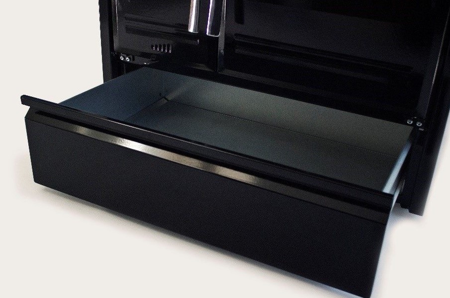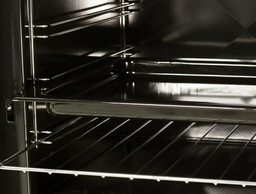 ● Ugn i rostfritt stål med rengöringslucka och kromade gångjärn och handtag