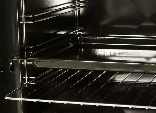 Vedeldad köksspis med yta i högkvalitativ emalj. Kan rengöras med bara en fuktig trasa.