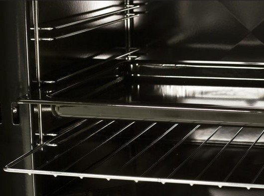 ● Ugn i rostfritt stål med rengöringslucka och kromade gångjärn och handtag
