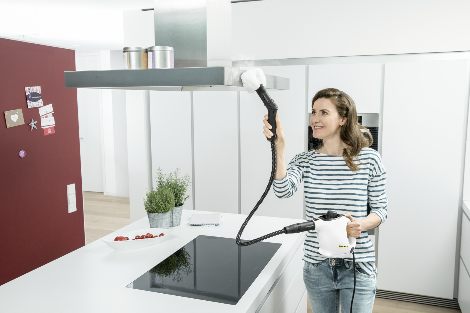 Handhållen ångtvätt SC 1 Premium är idealisk för snabb och enkel rengöring av hårda ytor i hemmet utan kemikalier. Den kompakta designen gör den lätt att förvara och den medföljande förlängningsslangen möjliggör rengöring av svåråtkomliga hörn och nischer. Maskinen tar effektivt bort envis smuts, kalkavlagringar och fettansamlingar.
