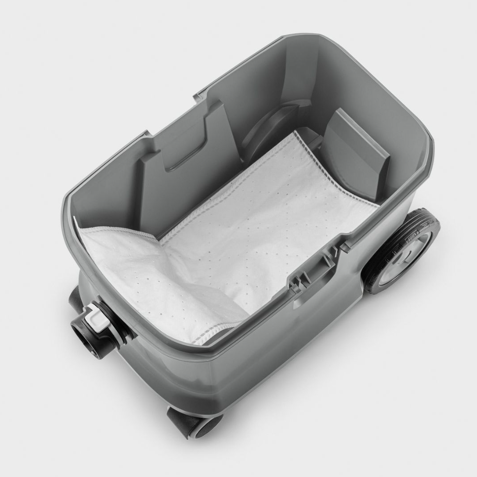 T 15/1 Bp är en kraftfull och hållbar batteridriven torrdammsugare som kombinerar hög prestanda med låg ljudnivå och robust konstruktion. Med 45 % återvunnet material i tillverkningen minskar den både energiförbrukning och miljöpåverkan. Den starka sugkraften drivs av 36 V batteriplattformen och gör maskinen idealisk för professionell rengöring. Tack vare den tysta driften på endast 57 dB(A) passar den utmärkt i ljudkänsliga miljöer. Den kompakta designen, 15-liters behållaren och ergonomiska bärhandtaget gör den enkel att transportera och använda. Batteri och laddare beställs separat.