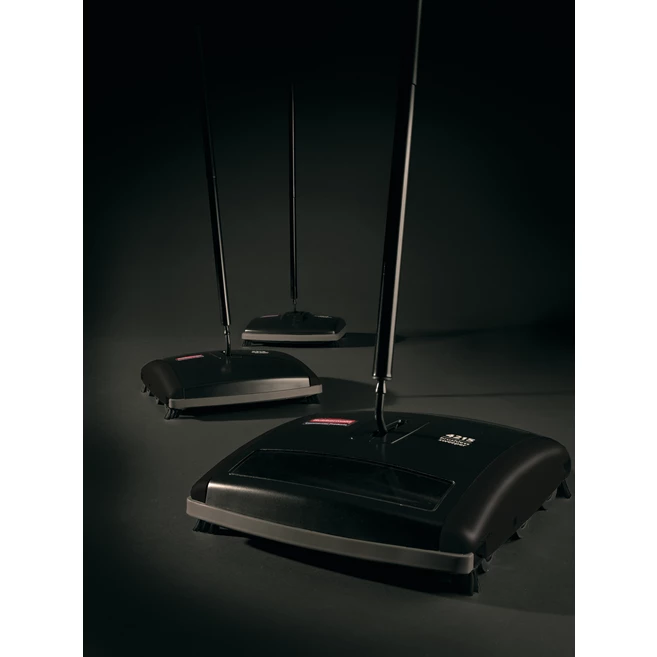 Rubbermaid Commercial Dual-Action Bristle mekanisk mattsopmaskin är utrustad med två typer av borstvalsar som effektivt samlar upp damm, smuts och skräp från mattor och hårda golv. Den slitstarka konstruktionen i galvaniserat stål och robust ABS-plast gör den idealisk för frekvent daglig användning i professionella miljöer.