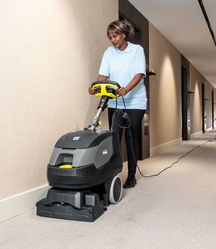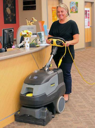 BRC 40/22 C är en professionell mattvättmaskin som jämfört med traditionella sprayextraktionsmaskiner möjliggör upp till 30 % snabbare arbete med garanterad djuprengöring. Den höga prestandan uppnås genom utmärkt manövrerbarhet och ett arbetskoncept med enbart framåtrörelse, vilket eliminerar onödiga tomkörningar. Samtidigt samlar den integrerade sopbehållaren effektivt upp lösa partiklar såsom hår och mattfibrer från ytan.