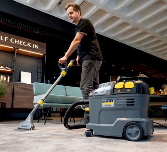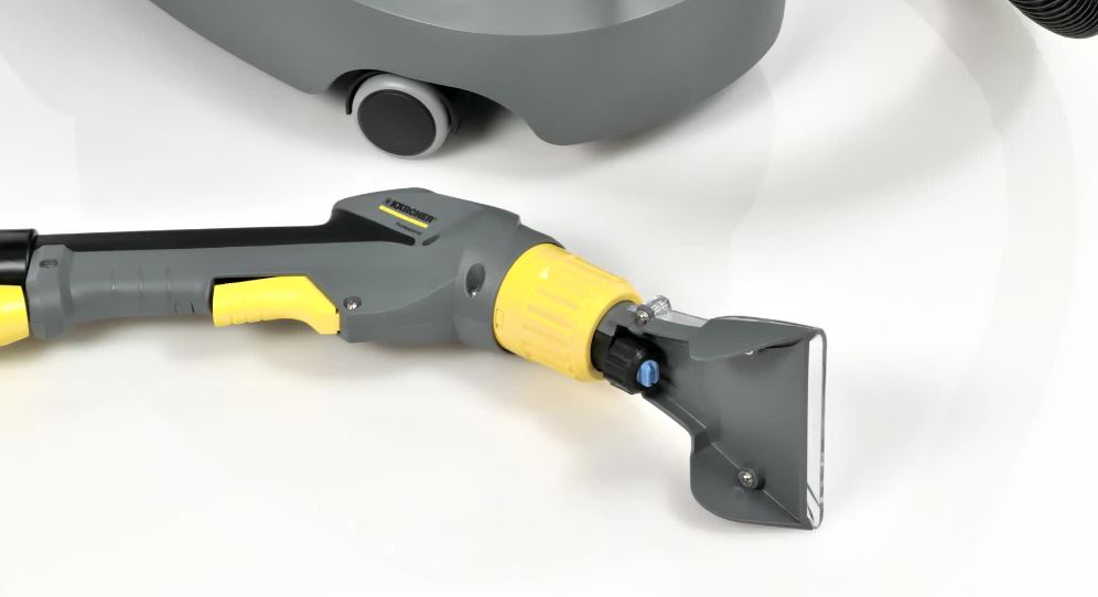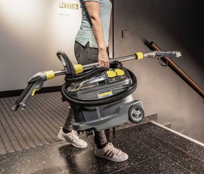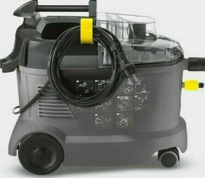 Kärcher Puzzi 8/1 är en robust och effektiv sprayextraktionsmaskin som levererar professionell djuprengöring av textilytor och klädsel. Maskinen sprutar rengöringslösning djupt ner i fibrerna och suger sedan upp smutsen tillsammans med vätskan, vilket ger hygieniska resultat och snabb torktid. Den kompakta designen, låga vikten och ergonomiska handtaget gör den enkel att transportera och använda, även i trånga utrymmen. Transparent lock och munstycke ger tydlig kontroll över smutsvattnet under arbetet.