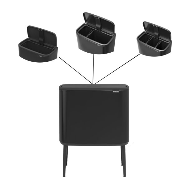 Papperskorg Brabantia Bo Touch Bin Matt SvartLetar du efter en vacker lösning för källsortering? Denna Bo Touch Bin på 23 + 11 liter från Brabantia ser inte bara ut som en möbel utan har också allt du behöver för enkel källsortering. Den har två avtagbara innerhinkar för två typer av avfall, passar perfekt mot en vägg och är försedd med justerbara antiglidfötter, vilket gör att den står stabilt. Den har en 'soft-touch' öppningsfunktion som gör att den enkelt och smidigt kan öppnas med ett lätt tryck. Det kallar vi sortering med stil! - Sortera med stil.