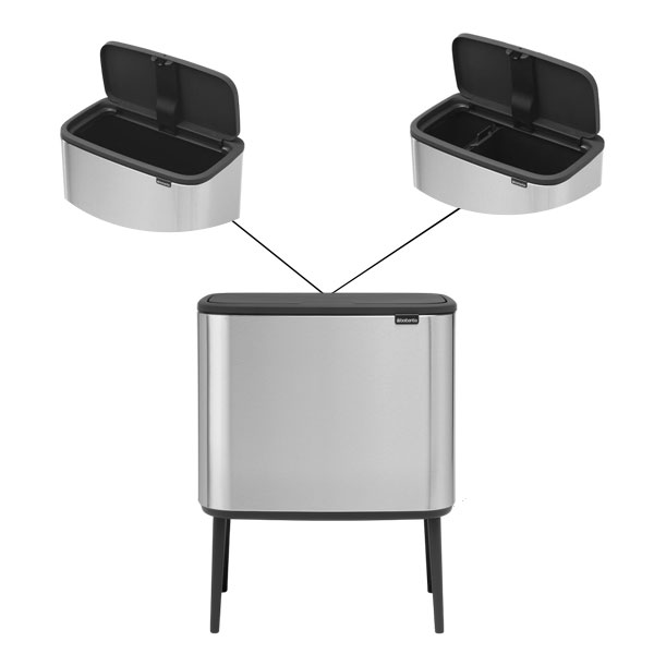 Papperskorg Brabantia Bo Touch Bin Mattborstat Stål FPPLetar du efter en vacker lösning för källsortering? Denna Bo Touch Bin på 23 + 11 liter från Brabantia ser inte bara ut som en möbel utan har också allt du behöver för enkel källsortering. Den har två avtagbara innerhinkar för två typer av avfall, passar perfekt mot en vägg och är försedd med justerbara antiglidfötter, vilket gör att den står stabilt. Den har en 'soft-touch' öppningsfunktion som gör att den enkelt och smidigt kan öppnas med ett lätt tryck. Det kallar vi sortering med stil! - Sortera med stil.