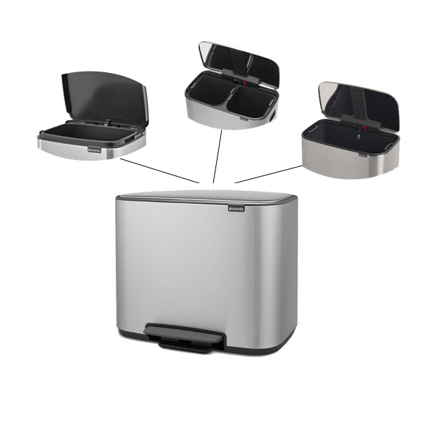 Varumärke Brabantia Typ Pedalhinkar Serie BO Kategori Avfallskärl Material Stål Färg Stål Ytskikt Mattborstat FPP Form Rektangulär Användning Kök, Kontor, Vardagsrum Garanti 10 år Kapacitet 36, 60 L Väggmonterad Nej Innerhink Plast Tyst stängning Ja Hantering Fot Riktning av locköppning Utåt -