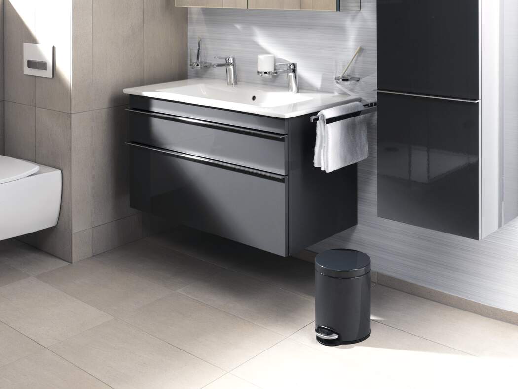 Pedalhink av pulverlackerad metall. Löstagbar 20 liters innerhink av plast med metallhandtag. Avfallspåsen hålls på plats med en medföljande gummiring. Tyst och mjuk stängning av locket. Antiglid och korrisionsskydd på undersidan. Pedalhinken har integrerat handtag i gångjärnet, vilket gör den lätt att flytta. Mått: höjd 45,5 cm; Ø 29,5 cm
