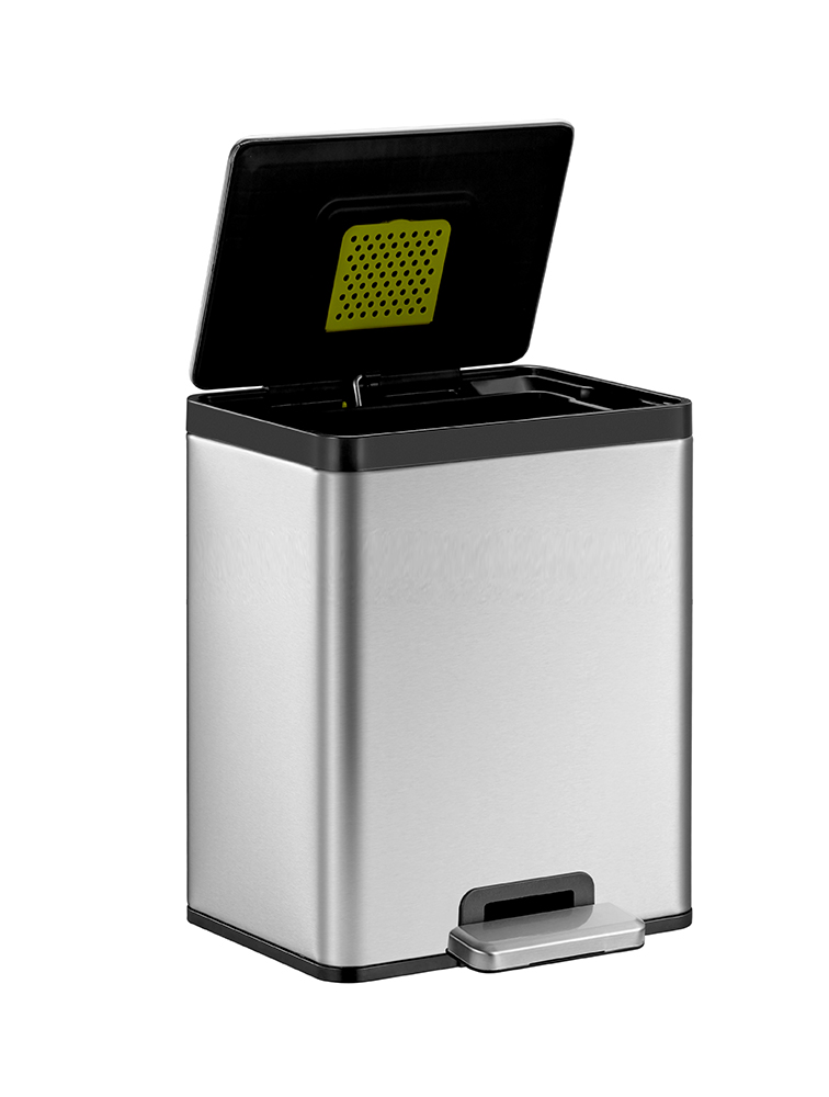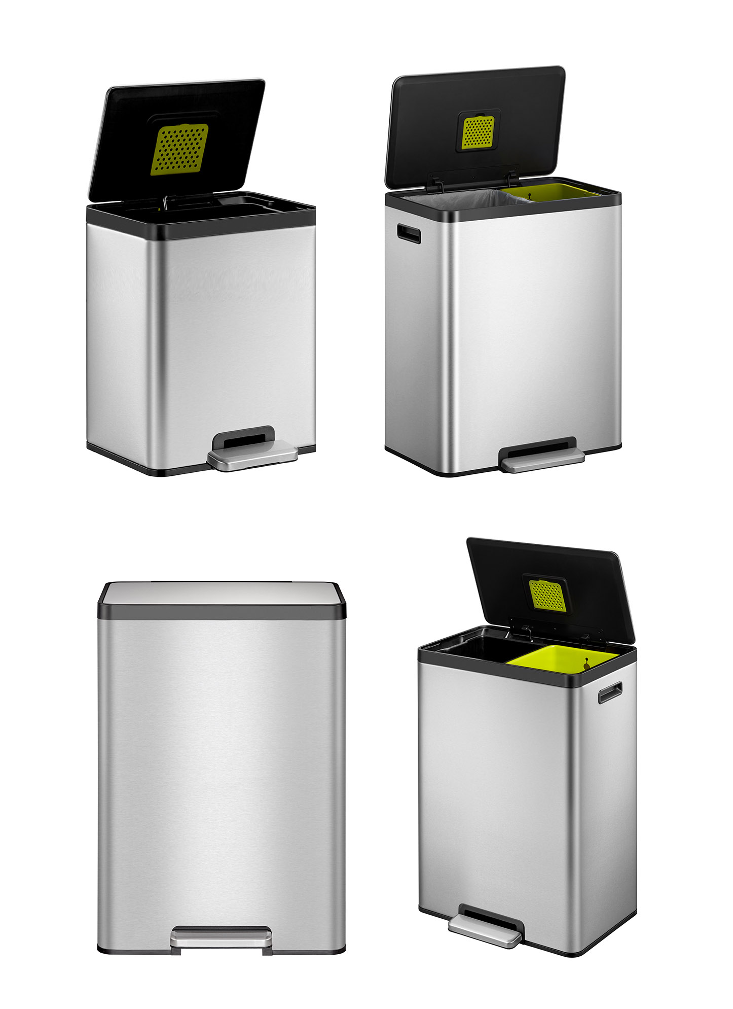 Varumärke Eko Typ Pedalhinkar Serie EcoCasa II Material Borstat rostfritt stål Färg Matt S/S Bredd 29.5, 33.3, 37.3, 37.5 cm Höjd 64.1, 65.6, 65.9, 66 cm Djup 36.5, 45, 52.6, 53 cm Form Rektangulär Vikt 4.97, 6.56, 8.5, 9.97 kg Kapacitet 30, 45, 60 L Väggmonterad Nej Antal fack 1, 2 Innerhink Plast Tyst stängning Ja Hantering Fot Riktning av locköppning Utåt Källsortering Ja  -