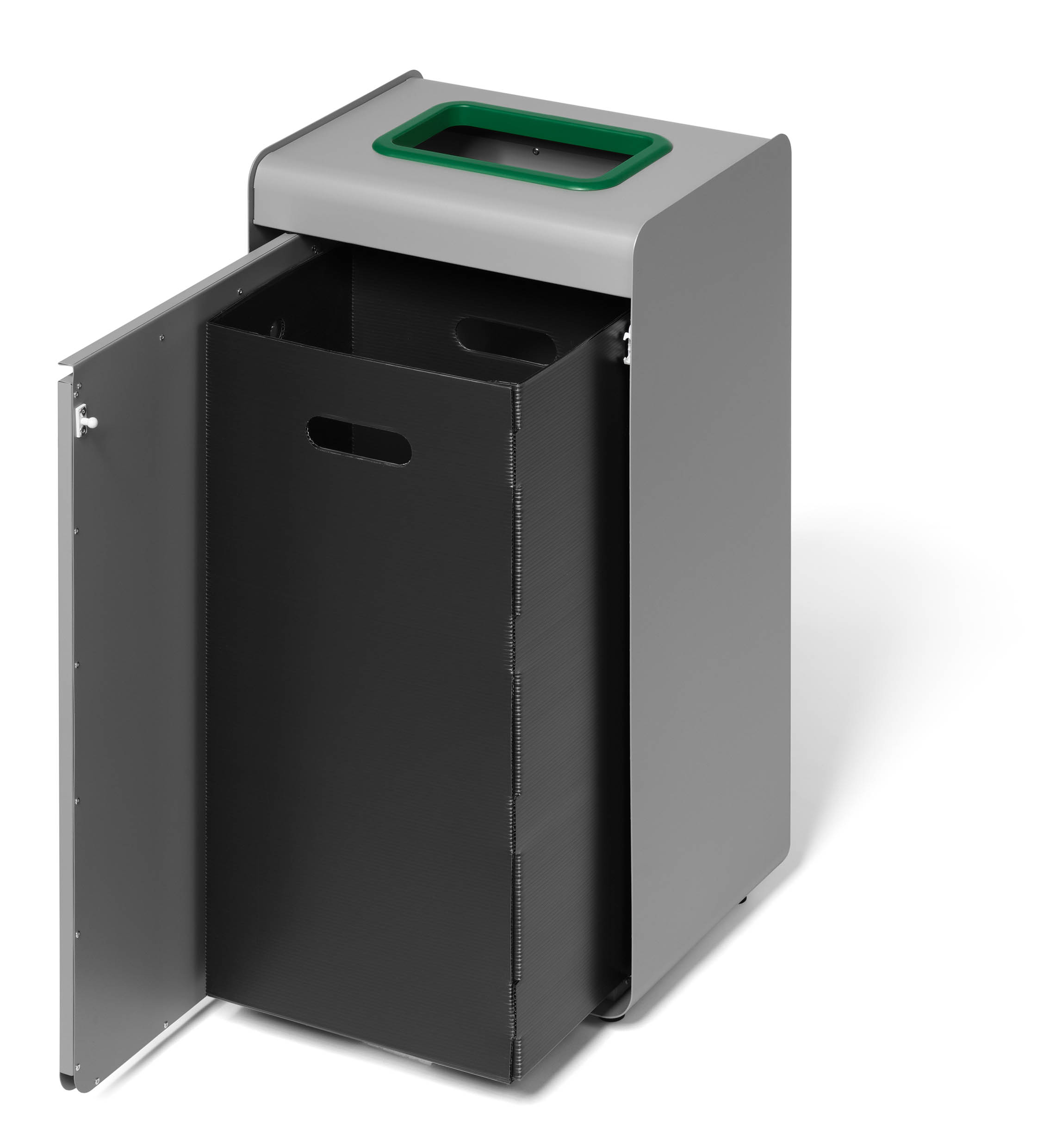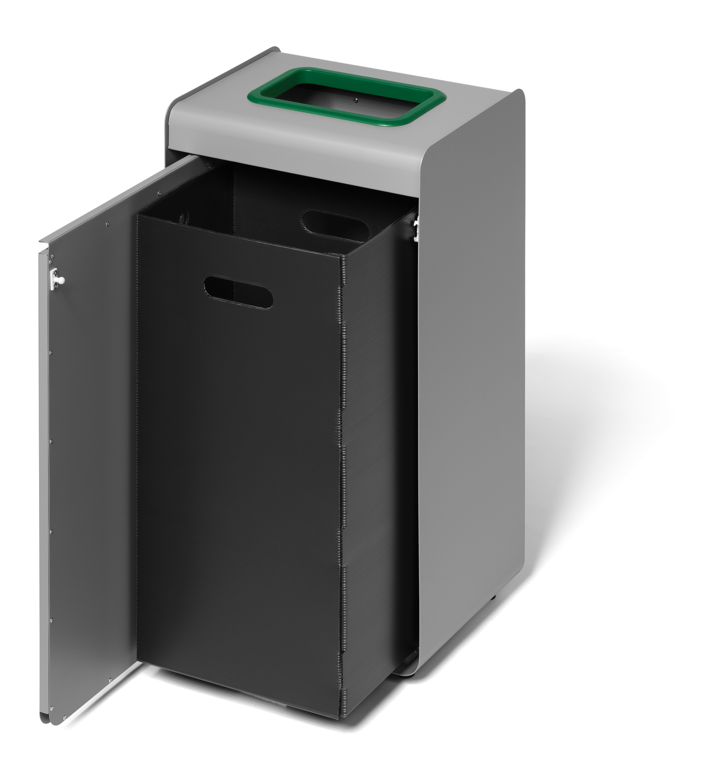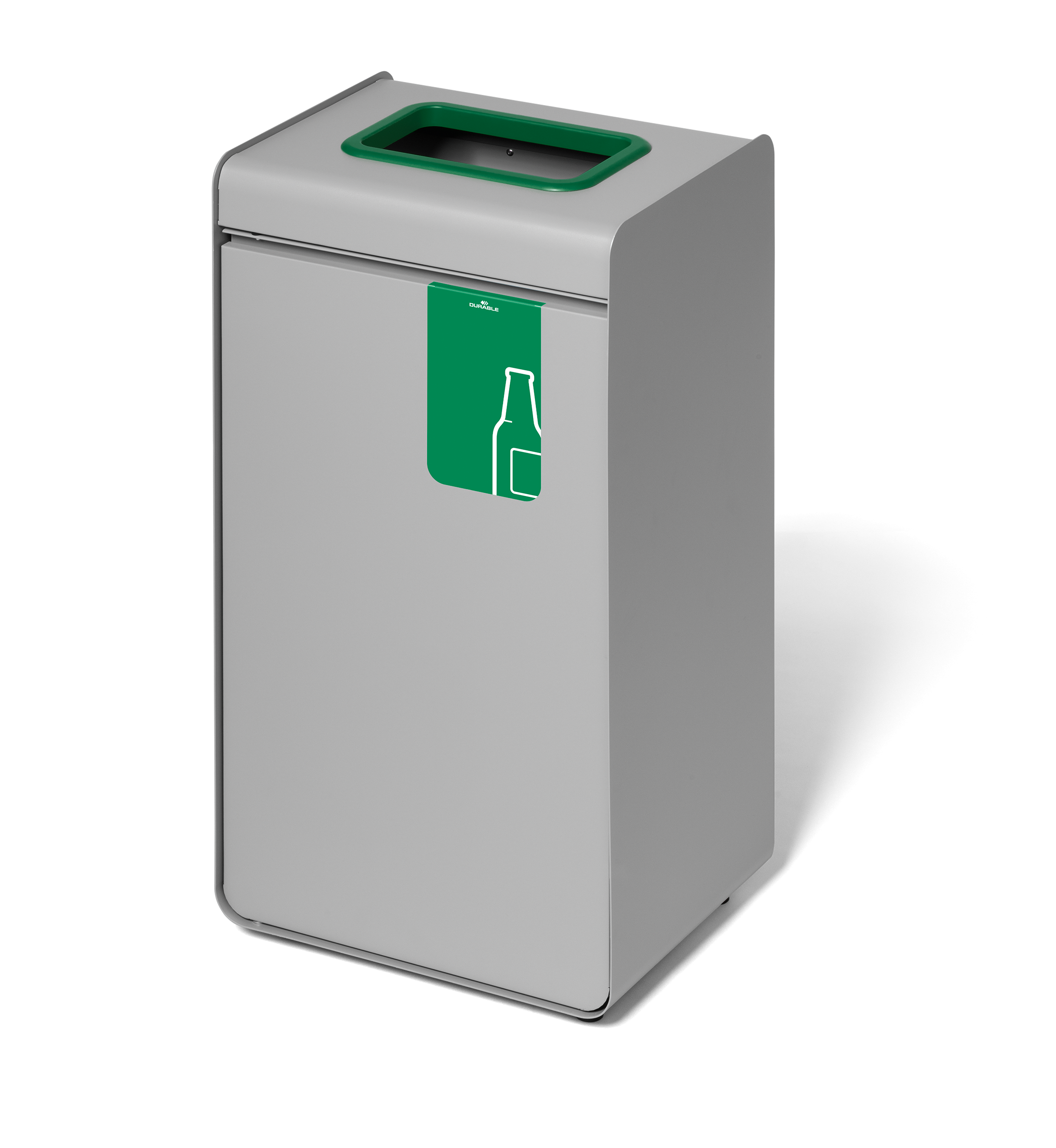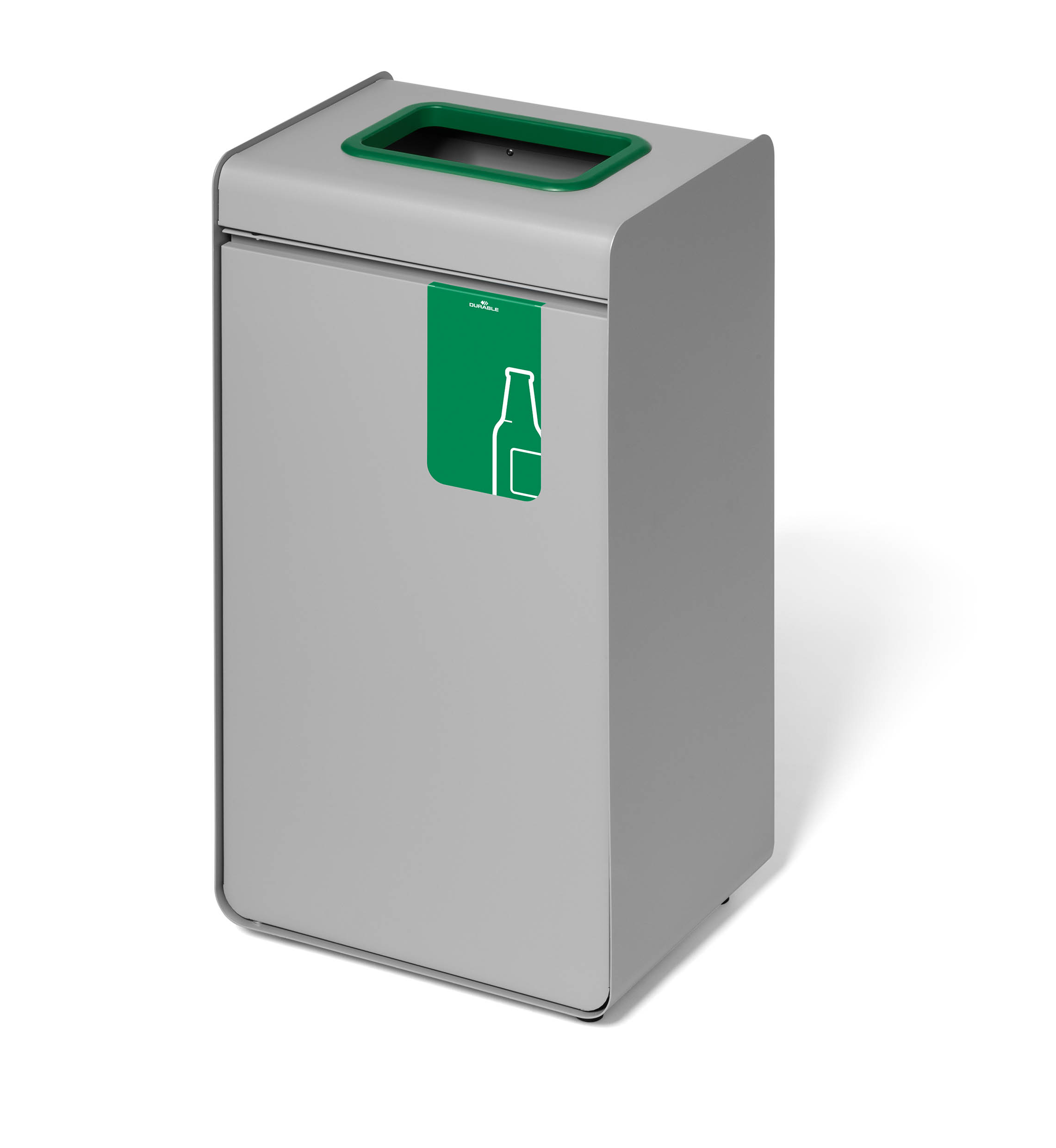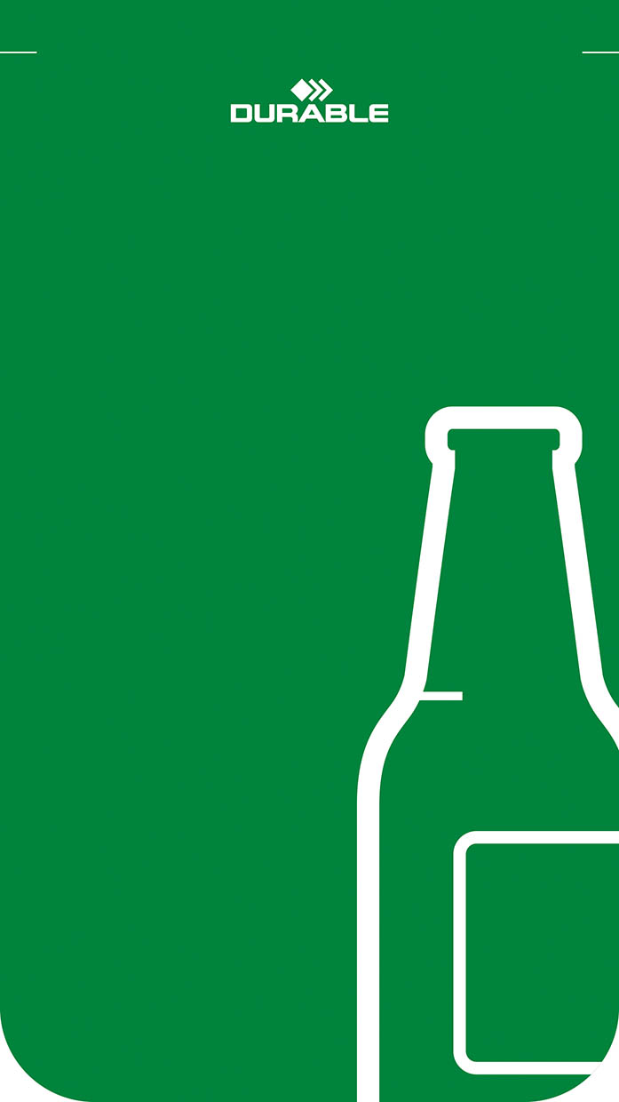 Återvinningskärl Durable Durasort Glas Grön 55L är ett robust och stilrent återvinningskärl av pulverlackad metall med innerbehållare i plast. Färgad öppning och symbol framtill visar tydligt vilken typ av avfall som ska sorteras. Kärlet är perfekt för inomhusbruk i exempelvis publika lokaler, skolor och matsalar. Tryck-och-öppna-mekanismen gör det enkelt att öppna dörren, och innerbehållaren är lätt att tömma. De justerbara fötterna ger stabilitet även på ojämna ytor.