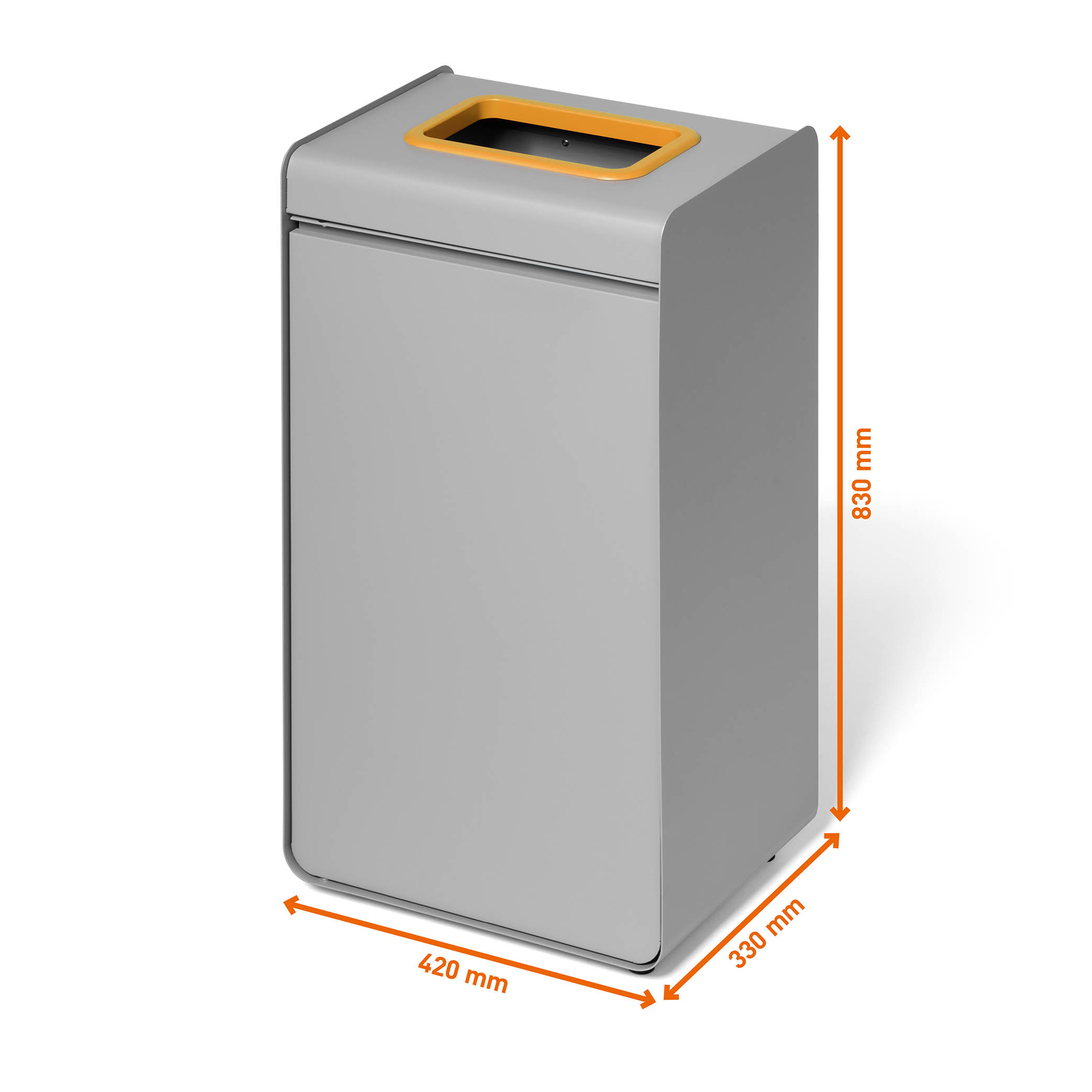Varumärke Durable EAN 4005546743639 Typ Återvinningskärl Serie Durasort Kategori Avfallskärl Material Metall Färg Grå/Gul Bredd 42 cm Höjd 83 cm Djup 33 cm Form Rektangulär Volym 55 L Innerhink Ja - Produktblad