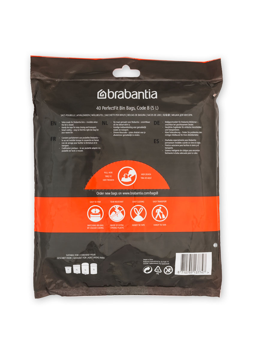 - Fyll på - 40 avfallspåsar som passar perfekt till din Brabantia 5 liters avfallshink (kod B).