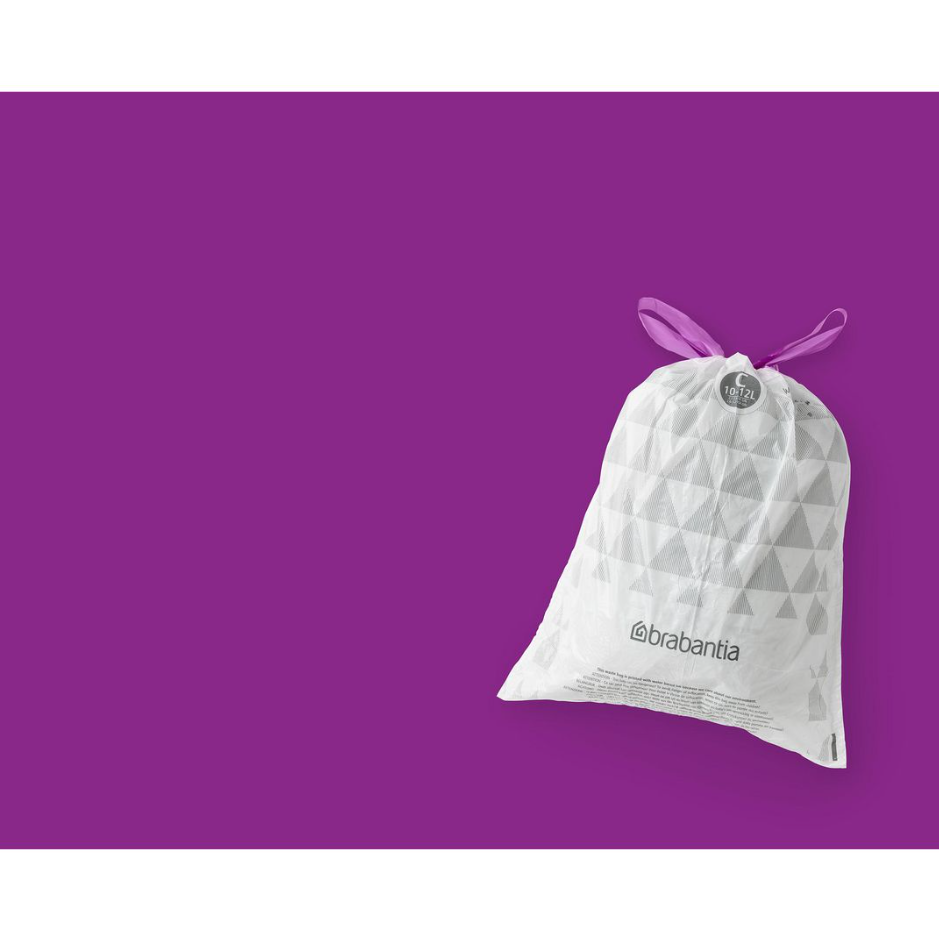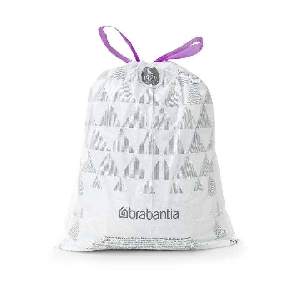Tillverkad av extra stark kvalitet plast (HDPE)Att hitta rätt Avfalspåse för din soptunna är lätt att hitta, tack vare den smarta kodningen. Kontrollera färgkoden på insidan av Brabantias soptunna så vet du exakt om du behöver små eller stora papperskorgar. Så du har alltid rätt storlek.