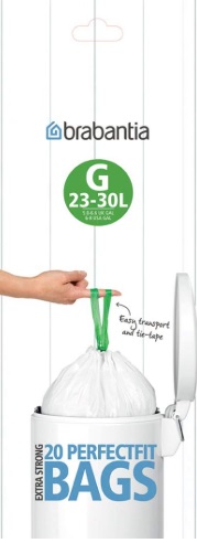 Varumärke Brabantia EAN 8710755246265 Typ Avfallspåsar Kategori Avfallssäckar Färg Vit Bredd 41.2 cm Längd 76 cm Antal påse/rulle 20 Volym 23 - 30 L -