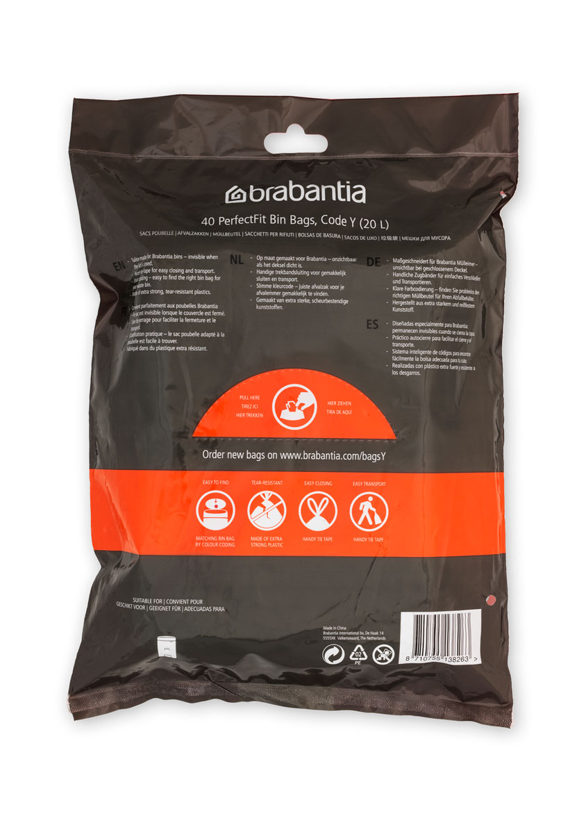 Brabantia PerfectFit soppåsar är perfekt skräddarsydda för att passa din Brabantia soptunna, och gjorda för att göra livet enklare. Det är därför de är extra starka, kommer i en praktisk dispenserförpackning och har en praktisk knytband också! Dra bara i den för att ta bort påsen från behållaren och försegla den. Är du osäker på vilken storlek du behöver? Kontrollera bara färgkoden på insidan av din soptunnas lock. Bra soppåsar som passar perfekt till din Brabantia soptunna.