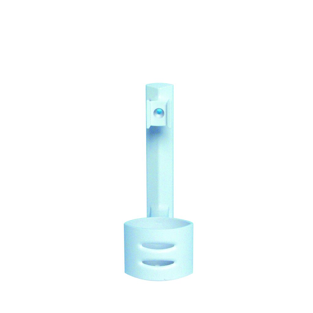 Vit väggmonterad flaskhållare från Diversey Soft Care Select, avsedd för säker och organiserad förvaring av refillflaskor. Flaskhållaren monteras enkelt på väggen med två skruvar och har ett integrerat låssystem som förhindrar att obehöriga tar bort flaskorna. Produkten levereras i kartong om 10 stycken för effektiv lagerhållning.