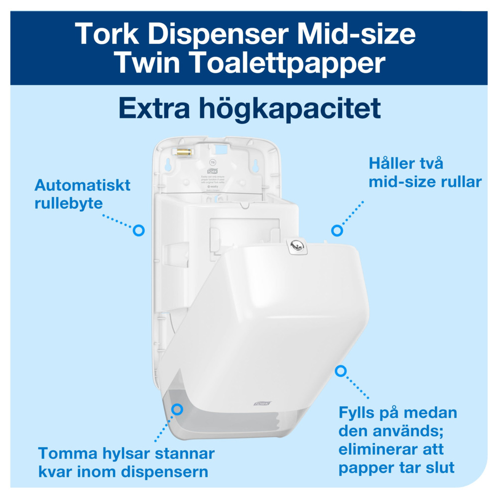 Tork Dispenser Mid-size Twin Toalettpapper Vit T6