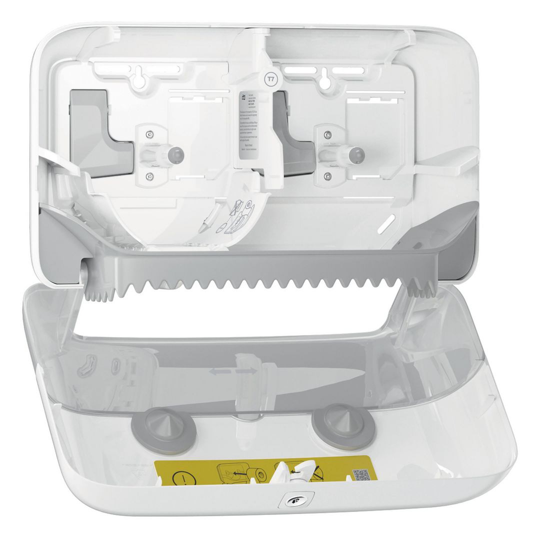 Varumärke Tork EAN 7322540898187 Typ Pappersdispensrar Kategori Dispenser Material Plast Färg Vit Bredd 36 cm Höjd 20.7 cm Djup 13 cm Vikt 1.3 kg, 1.14 kg Bruttovikt 1.14 kg System T7 - Tork - Produktblad