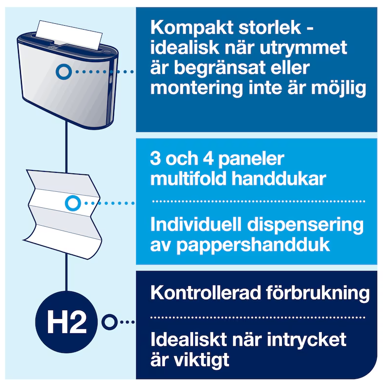 Minska antalet påfyllningar med ett system som matar ut en handduk i taget och minskar den onödiga förbrukningen och avfallet.*
