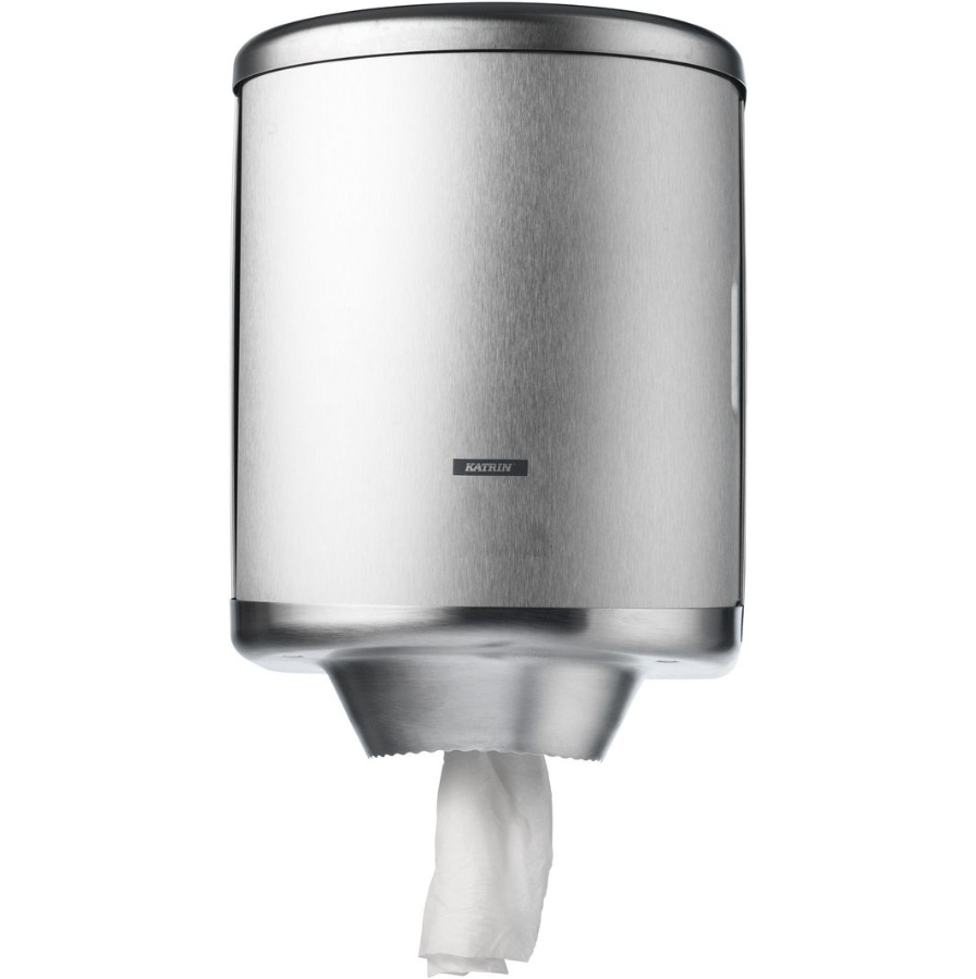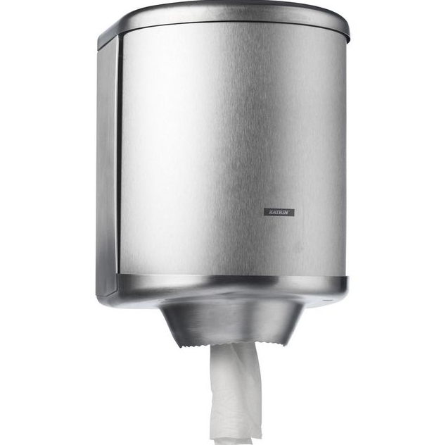 Katrin Centerbox M är en elegant och robust handtorkhållare i borstat rostfritt stål, designad för att kombinera stil och funktionalitet. Den passar perfekt i offentliga toaletter med låg till medelhög besöksfrekvens, där både hygien och ett professionellt intryck är viktiga. Dispensern har ett praktiskt inspektionsfönster som visar när det är dags att fylla på papper, och den är enkel att öppna, ladda och montera.