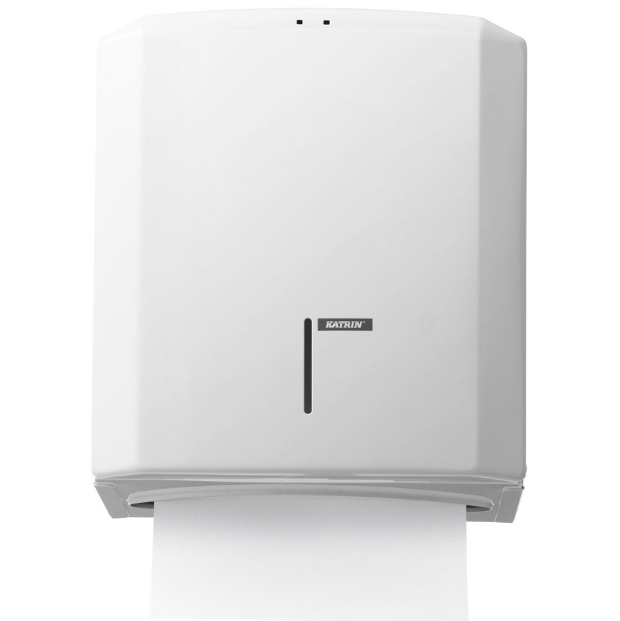Varumärke Katrin EAN 6414300988113 Typ Pappersdispensrar Kategori Dispenser Material Metall Färg Vit Bredd 27.5 cm Höjd 33 cm Djup 13.2 cm Vikt 2 kg Förpackning storlek 34.5x15x28.5 cm Bruttovikt 2.2 kg System M - Katrin - Produktblad