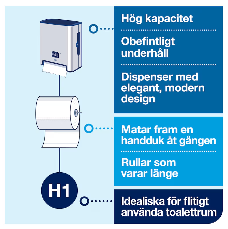 ● Utmatning av ett ark i taget minskar förbrukningen och ger förbättrad hygien.