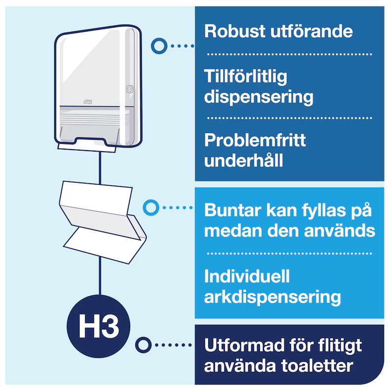 Tork Dispenser Singlefold Handduk Vit H3Beskrivning: