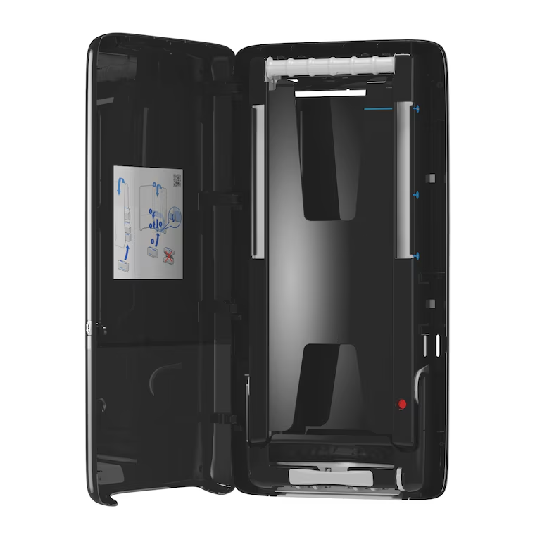 Tork PeakServe Continuous H5 Svart är den senaste innovationen utformad för högtrafikerade toalettutrymmen där personalen måste maximera städtiden och upprätthålla ett bra besöksflöde. Dispensersystemet är kompatibelt med Tork PeakServe Continuous™ Handduk och har hög kapacitet på över 2 100 handdukar för snabb och avbrottsfri utmatning.