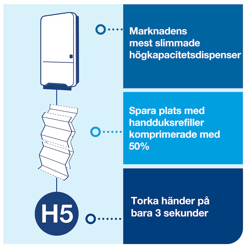 ● Marknadens högsta kapacitet (upp till 250 % fler handdukar) innebär färre påfyllningar och ökad effektivitet.*