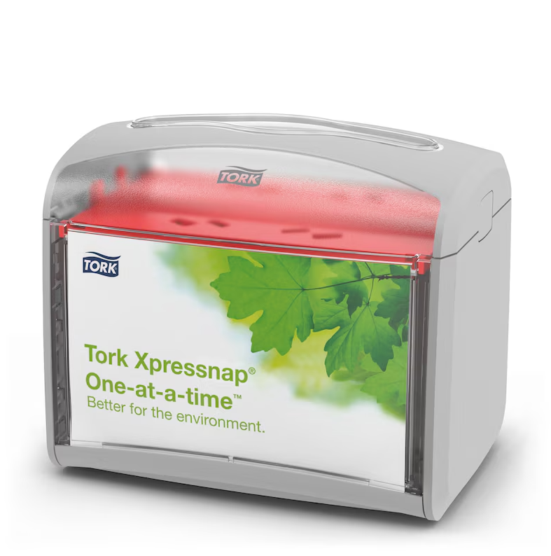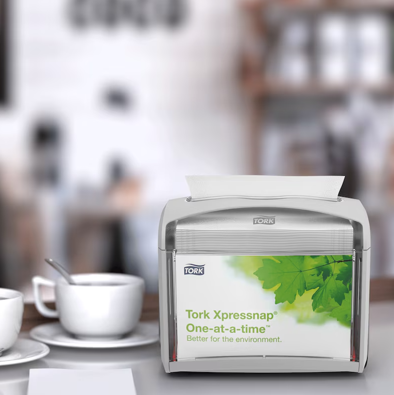 Tork Xpressnap® Stående Dispenser passar perfekt för restauranger med begränsad service där man erbjuder servetter vid bordet. Den här kompakta och moderna dispensern matar ut en servett i taget. Resultatet blir förbättrad hygien och minskad förbrukning med minst 25% jämfört med traditionella servettdispensersystem. Tillgänglig i ett stort urval av moderna färger som är lätta att matcha med din inredning.