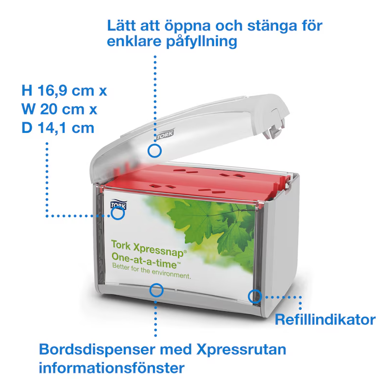 Refillindikatorn visar när det är dags att fylla på vilket minskar risken för att servetterna ska ta slut.