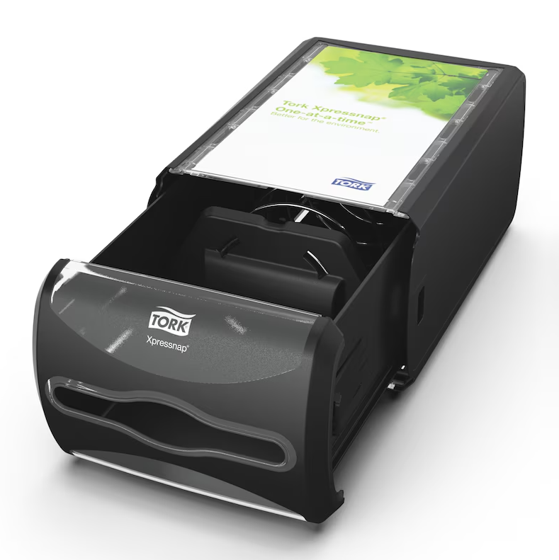 Tork Xpressnap® Liggande Dispenser passar perfekt för restauranger med begränsad service där man erbjuder servetter på en central plats. Den moderna dispensern matar ut en servett i taget. Resultatet blir förbättrad hygien och minskad förbrukning med upp till 43 % jämfört med traditionella servettdispensersystem.