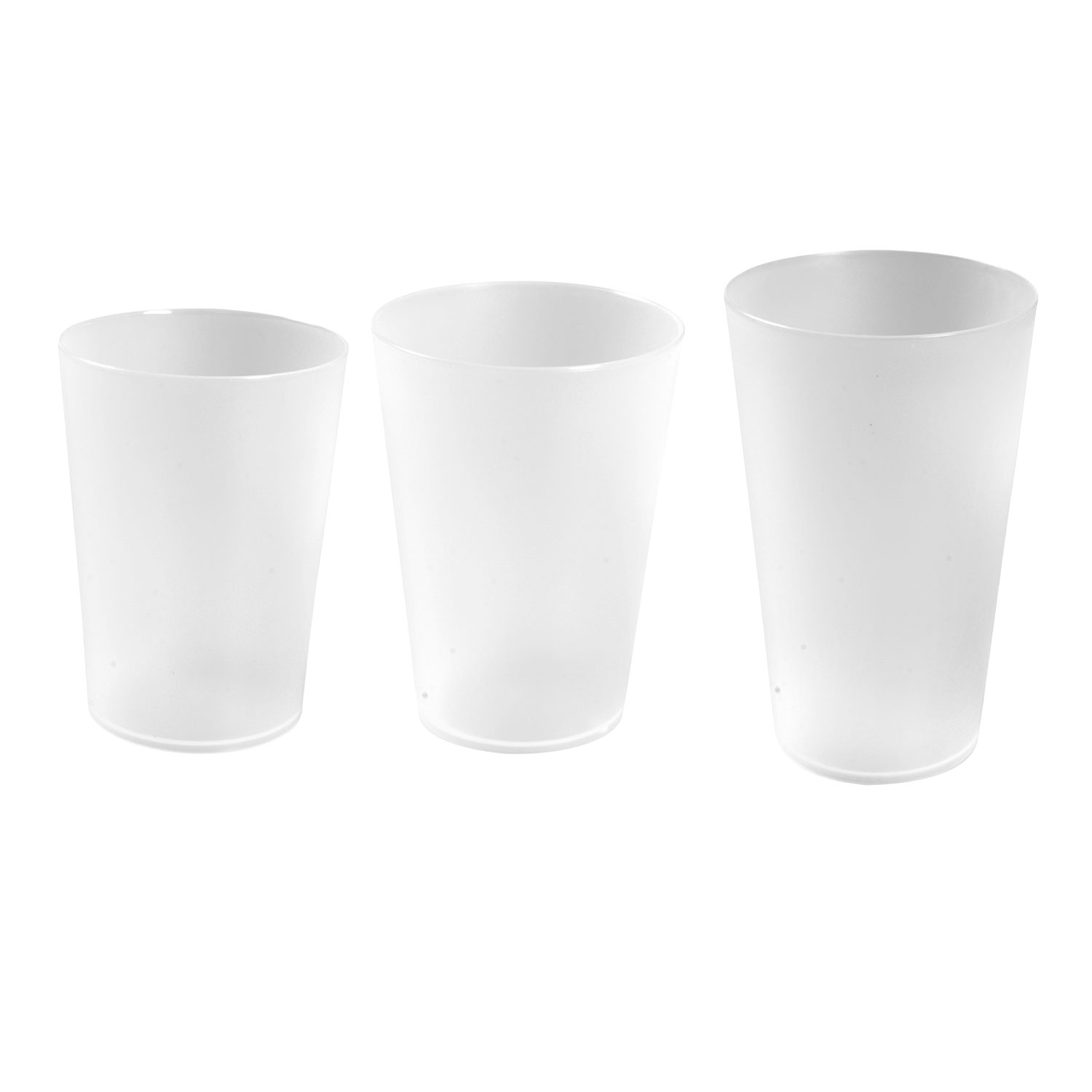 Dricksglas för flergångsbruk, tillverkade i PP med en kvalitet som tål diskmaskin och mikrovågsugn. Dessutom är PP 100 % återvinningsbart med rätt sortering.