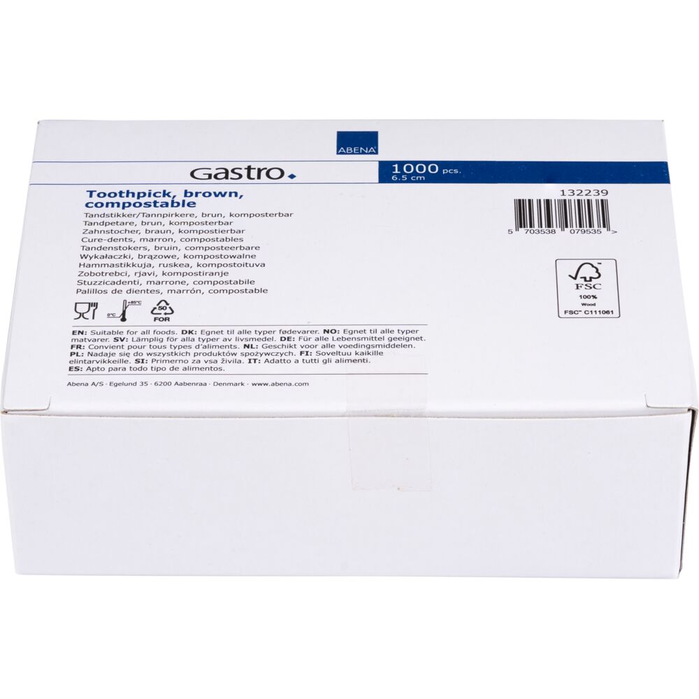 Varumärke Abena EAN 5703538079535 Typ Tandpetare Kategori Foodservice Material Trä Färg Trä Längd 6.5 cm Vikt 0.1 kg Antal st/fp 1000 Volym 0.001 dm3 - Produktblad