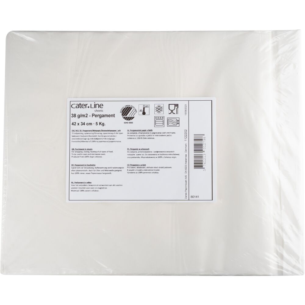 Cater-Line svanenmärkt pergamentpapper är tillverkat av fettbeständigt pergament. Det är en bra allroundprodukt som kan användas för att förpacka fisk, kött, snabbmat och andra feta livsmedel såväl som för vanligt hushållsbruk. Pappret är fritt från fluor, är inte blekt med klor och är biologiskt nedbrytbart.