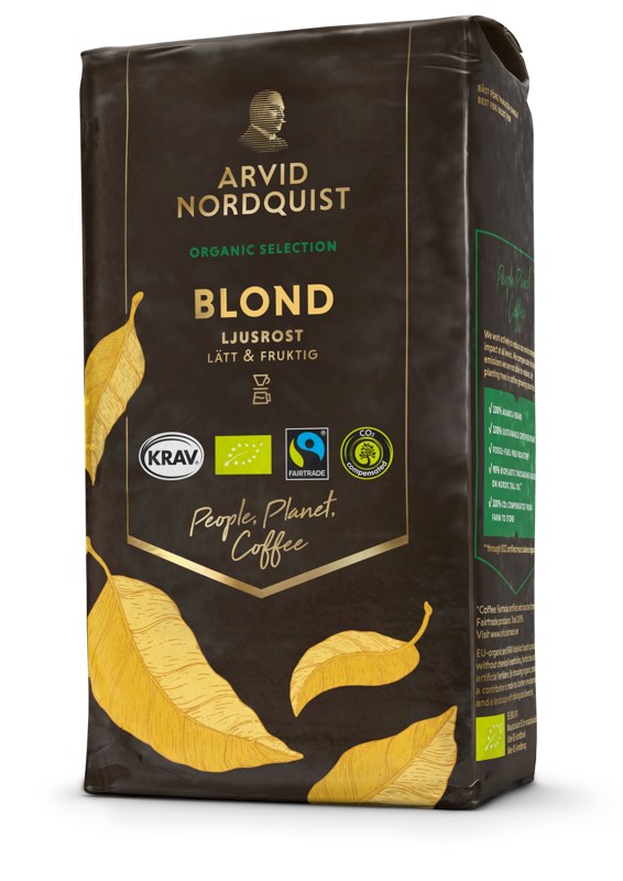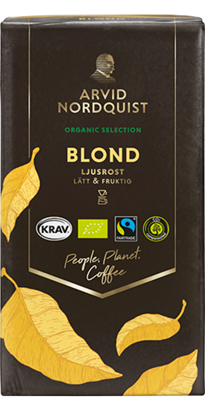 Arvid Nordquist Blond är ett ljusrostat kaffe med en fruktig och söt smak. Den har en frisk eftersmak med toner av citrus och en balanserad arom som gör den både lätt och uppfriskande. Kaffet ingår i Arvid Nordquists Selection-sortiment och består till 100% av ekologiska arabicabönor av hög kvalitet. Rostningen sker helt fossilfritt för att minimera klimatpåverkan och varje kopp är både hållbart och klimatkompenserat.
